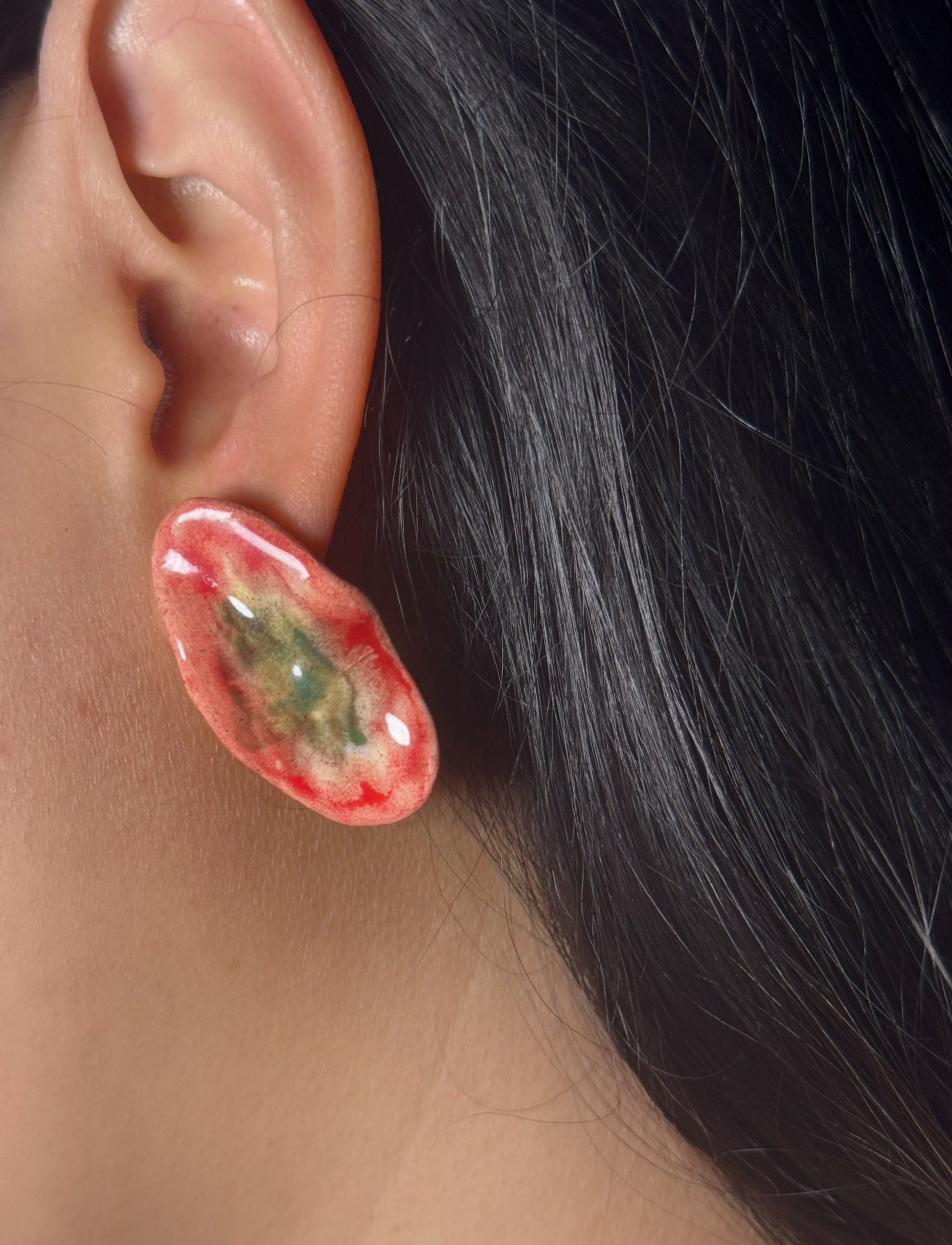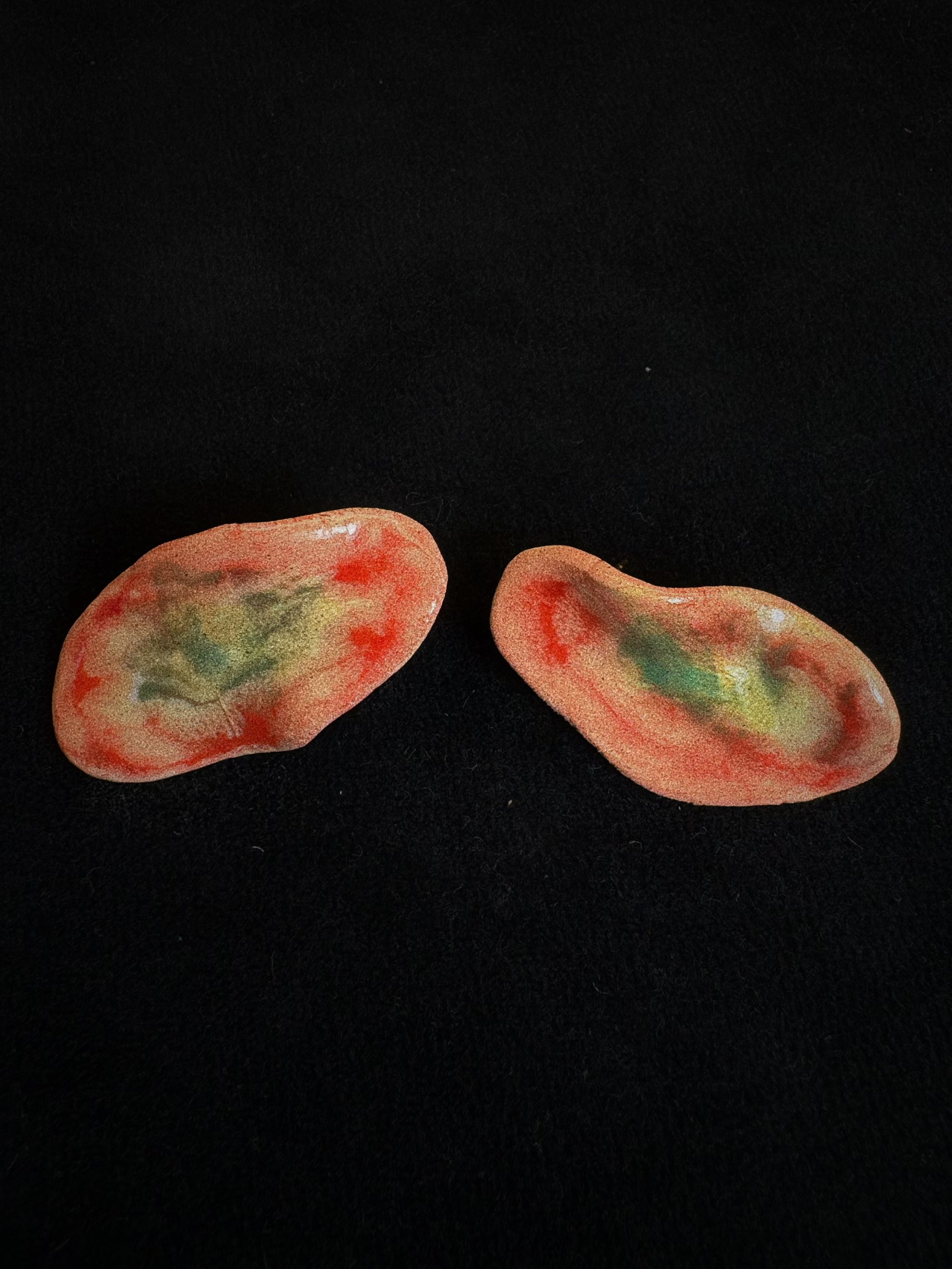 Leuchtende Glasurschichten bilden organische Punkte, Wolken und mikroskopische Landschaften – jedes Stück ein spontanes Farbexperiment und ein echtes Unikat.