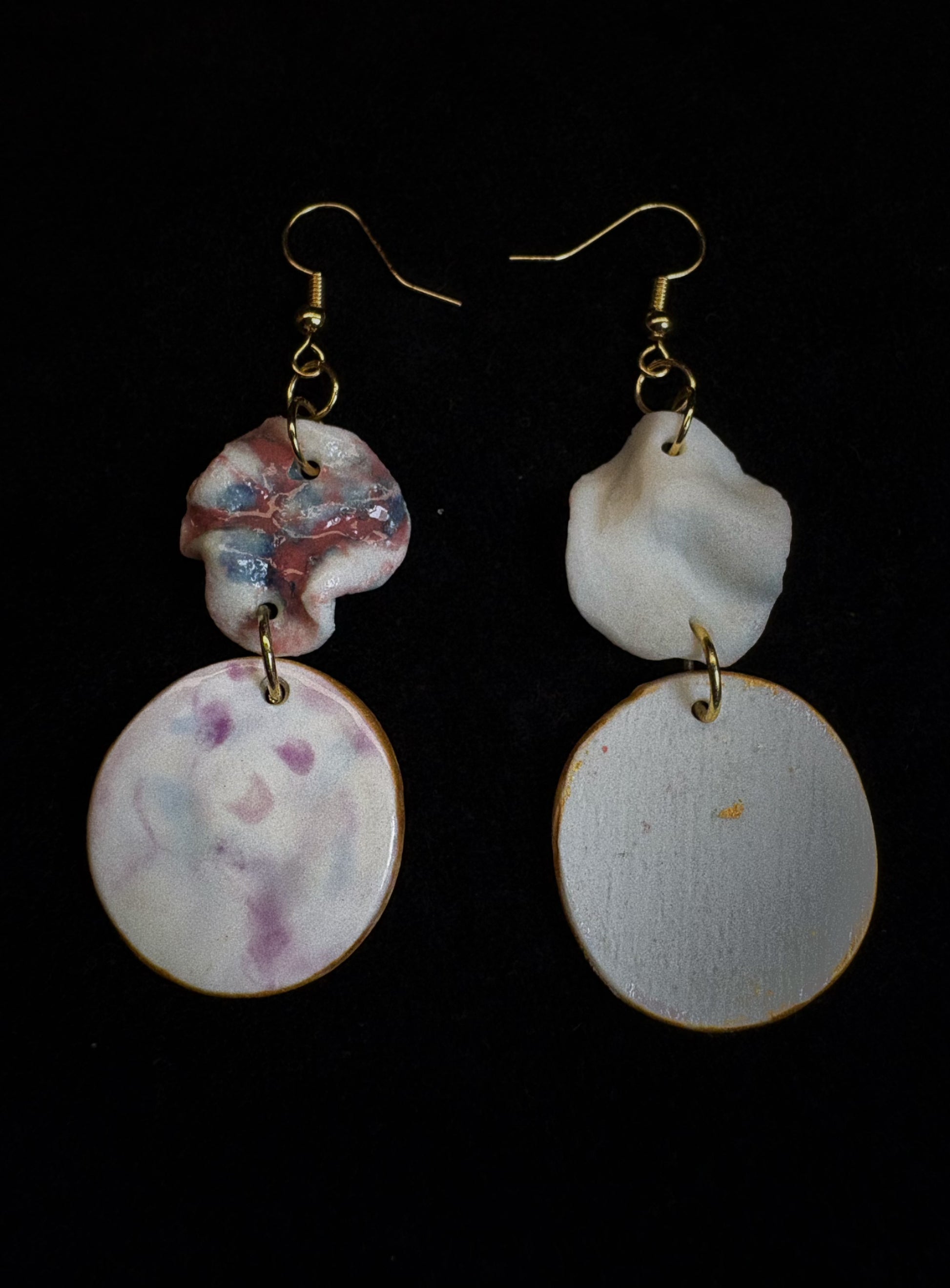 Leuchtende Glasurschichten bilden organische Punkte, Wolken und mikroskopische Landschaften – jedes Stück ein spontanes Farbexperiment und ein echtes Unikat.